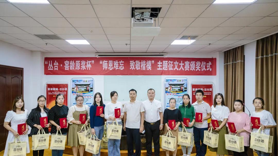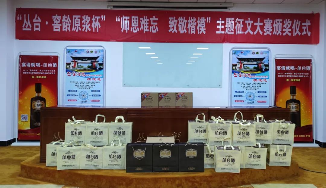 2021年9月4日,由丛台酒业公司冠名的丛台•窖龄原浆杯“师恩难忘•致敬楷模”主题征文大赛颁奖活动在丛台酒苑景区七楼会议室举行。