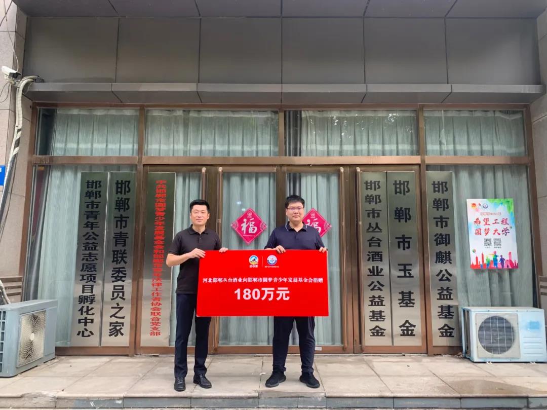 丛台酒业向邯郸市圆梦青少年发展基金会捐赠180万元