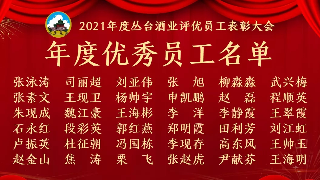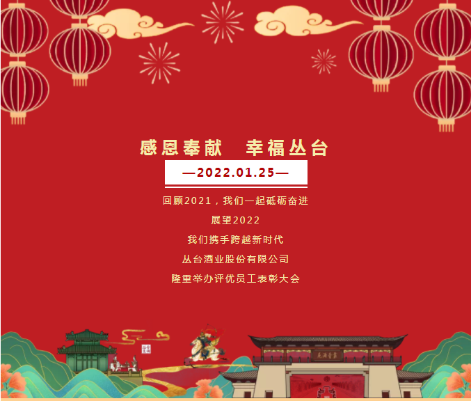 丛台酒业股份公司2021年度评优表彰会在“2022年,出征扬帆,一马当先;继往开来,中国丛台” 誓言声中圆满落下帷幕,同时也开启了丛台酒业虎啸鸿图的新征程!