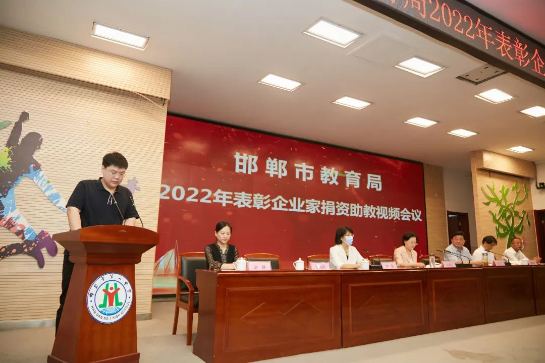 2022年8月11日上午,邯郸市教育局2022年表彰企业家捐资助教视频会议在邯郸市一中报告厅隆重举行。邯郸市教工委书记、教育局党组书记、局长张荷红及局领导赵小丁、李瑄、张培银,云开体育官网登录总经理李鹏亮等出席会议。
