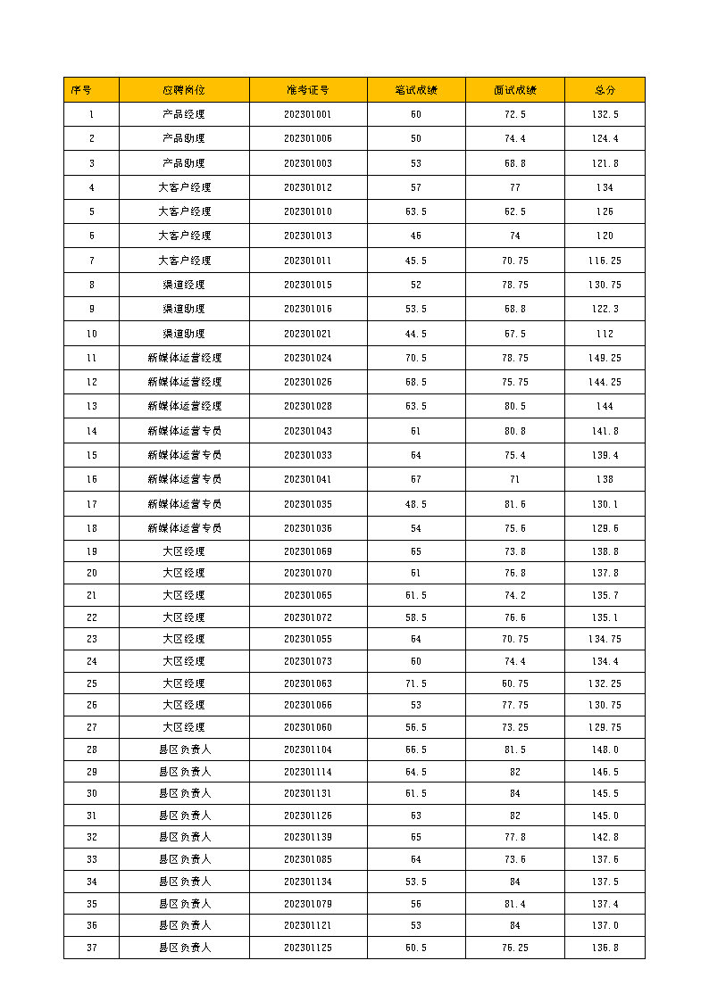 2023年社会招聘录用人员成绩公示