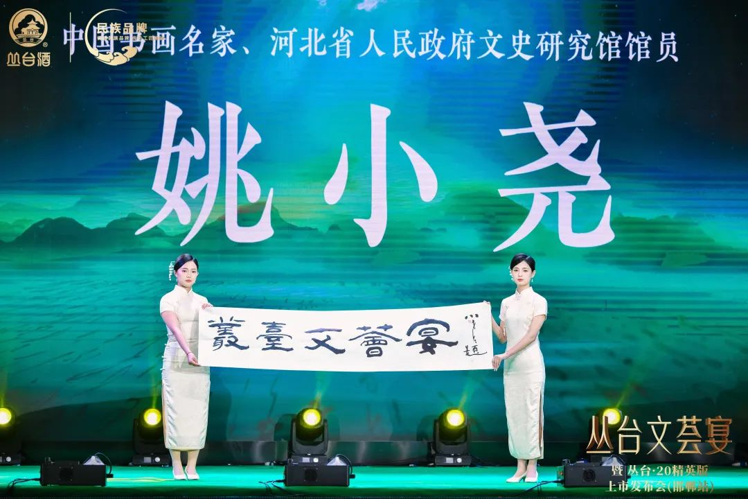 中国书画名家、河北省人民政府文史研究馆馆员姚小尧为本场宴会题字--“丛台文荟宴”,古有王羲之,为文荟宴书《兰亭集序》;今有姚小尧先生为丛台文荟宴手书题字。是古今贯通之趣事,也自有文化传承之妙意。