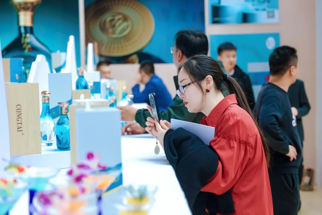 时尚的外形色彩,手感与观感完美融合的外包装设计,柔和顺爽的口感,活分子活力系列备受参会商家喜爱,展区内人流不断,洽谈区气氛活跃。同时,丛台窖龄系列同样得到了各地经销商的赞赏。丛台·窖龄30端庄、沉稳、大气;丛台·窖龄20精英版开片瓷工艺酒瓶通透靓丽,代表了河北白酒的经典之作。丛台活分子V10活力四射,已经成为丛台酒业后起之秀的核心大单品。