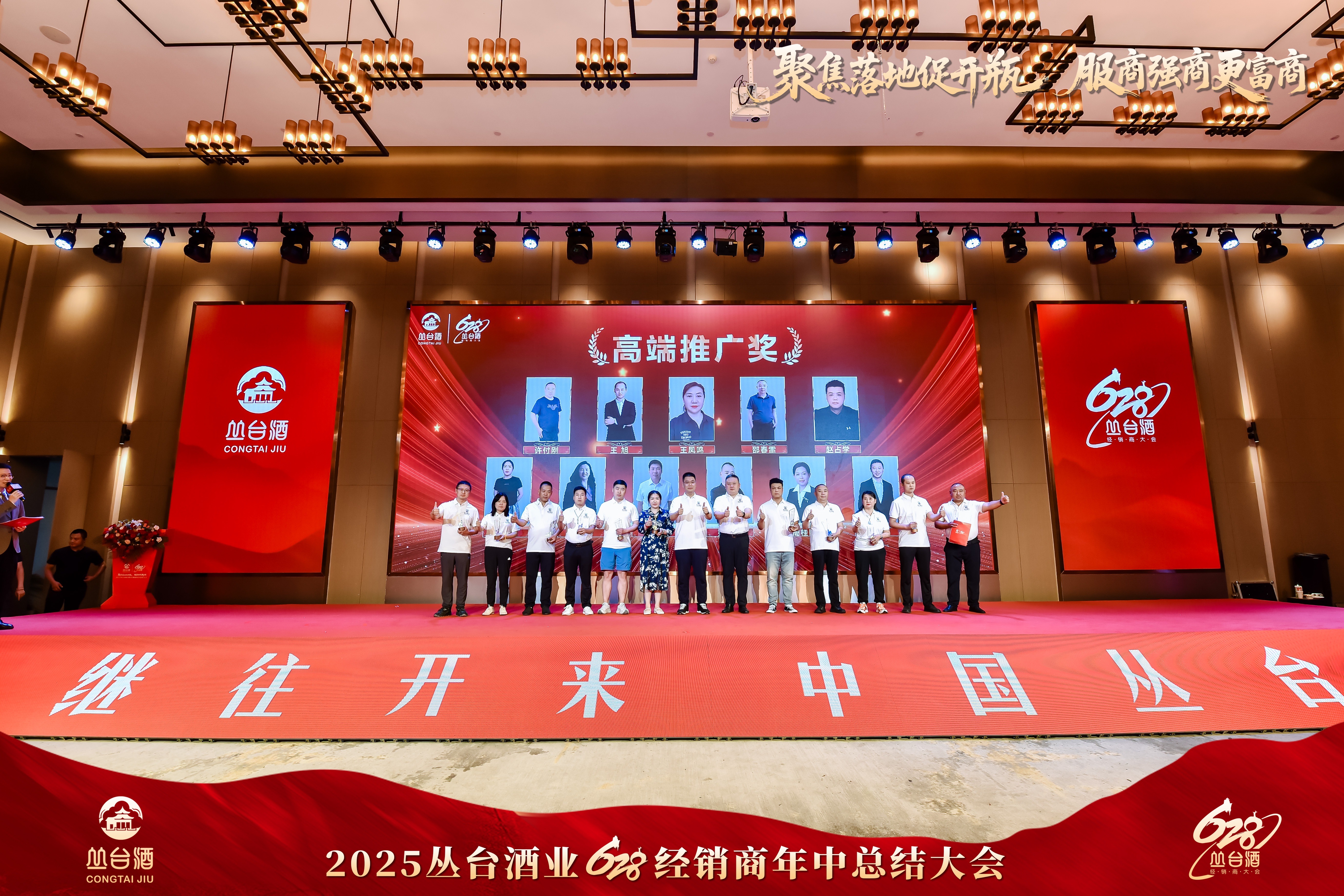大会对2025年上半年表现突出的经销商进行隆重表彰,其中包括宴席推广奖、开瓶领航奖、高端推广奖。获得荣誉表彰的经销商代表纷纷发言,表示对丛台的品质和品牌认可,对未来的发展充满希望。