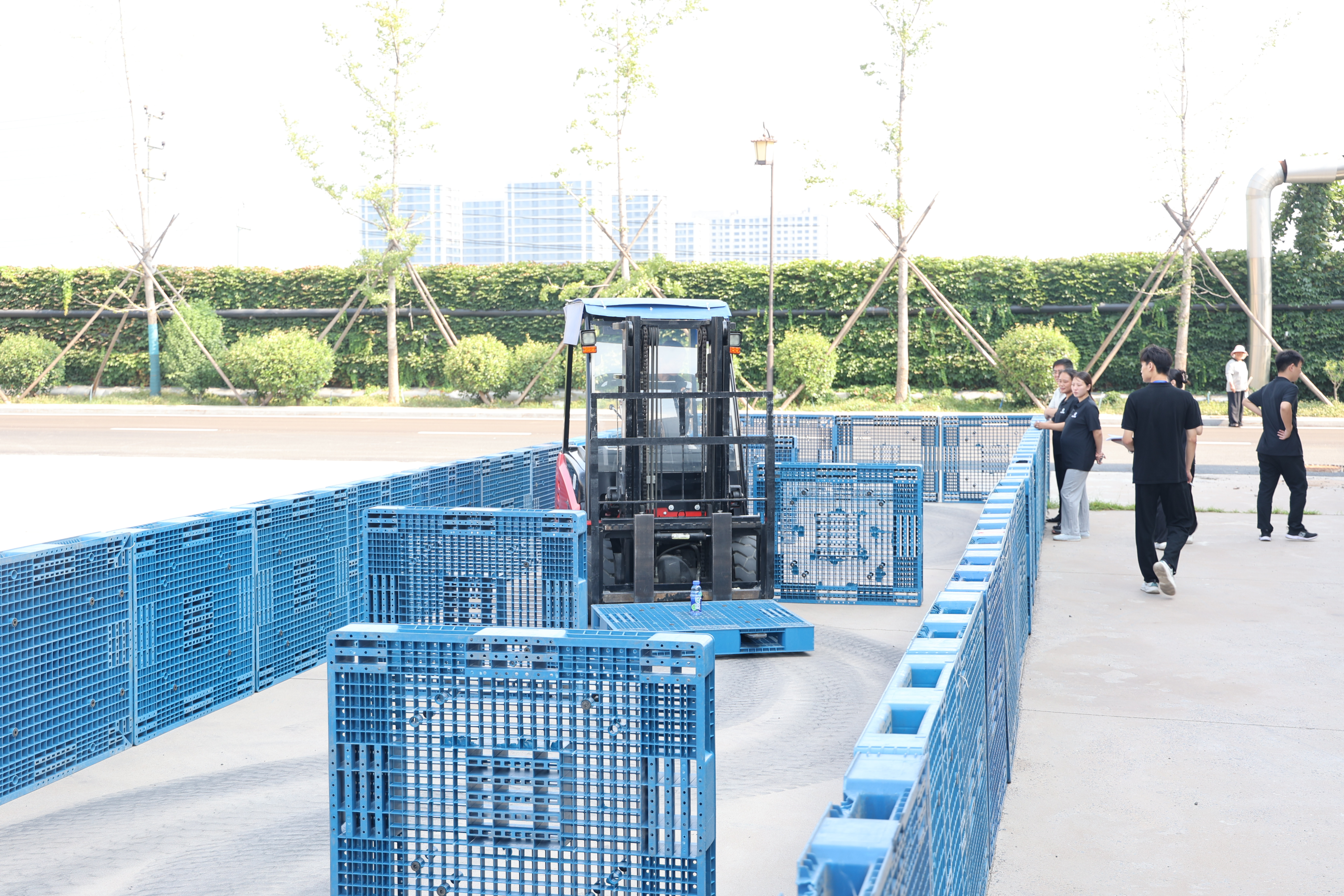 赛场上,选手们全神贯注,每一次转向、提升、降落都干脆利落。叉车在他们手中仿佛有了“灵性”:有的选手在窄道穿行中,仅凭厘米级的调整便平稳通过;有的在精准堆垛时,托盘叠放误差不超过2厘米;还有的在绕障运输中,以最快速度完成路线却全程零碰撞……场边观赛的同事们不时发出阵阵喝彩,掌声与叉车引擎声交织成最美的赛场旋律。
